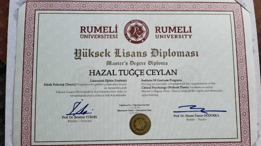 - Rumeli Üniversitesi Klinik Psikoloji Yüksek Lisans